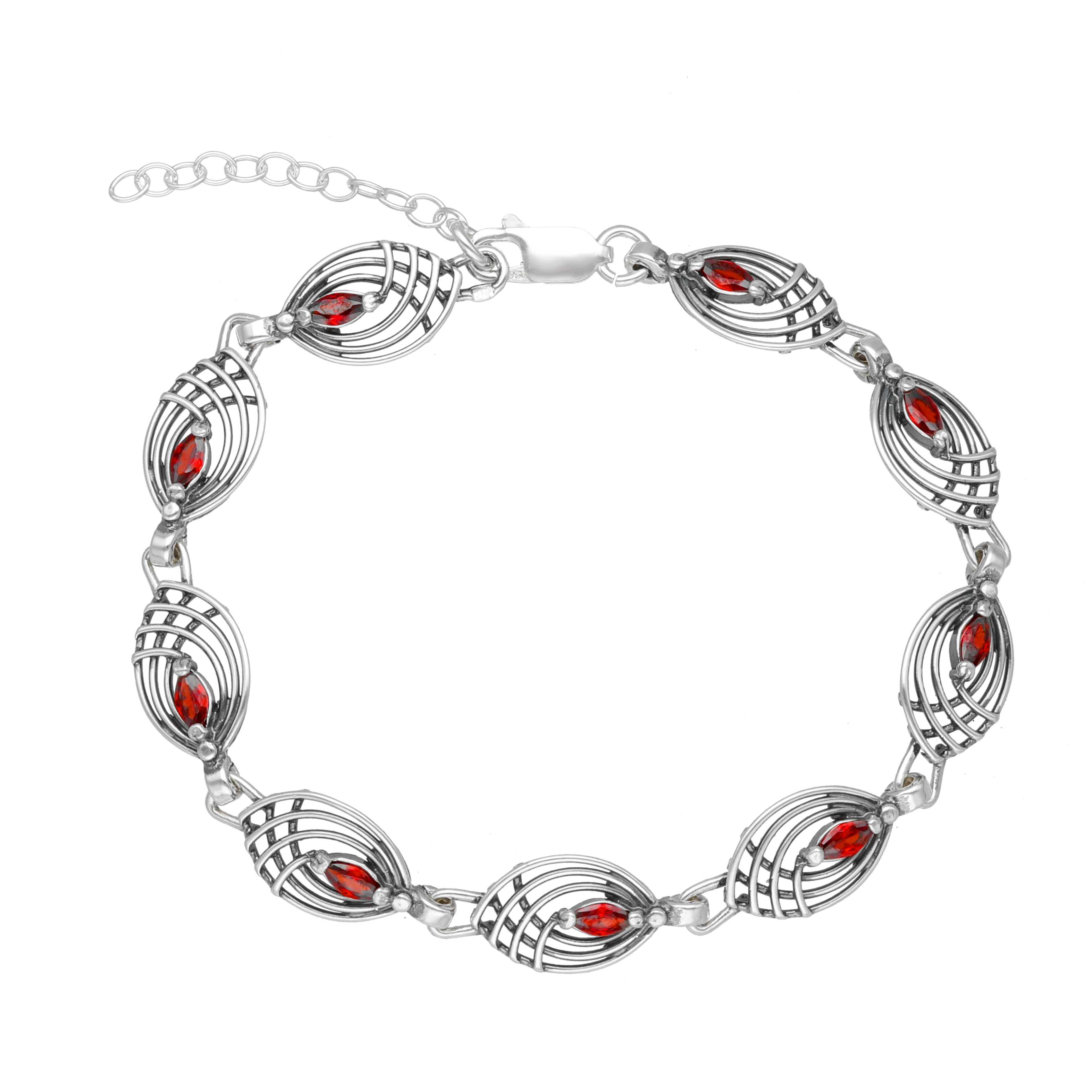 Bransoletka ażurowa z burgundowymi cyrkoniami srebro oksydowane