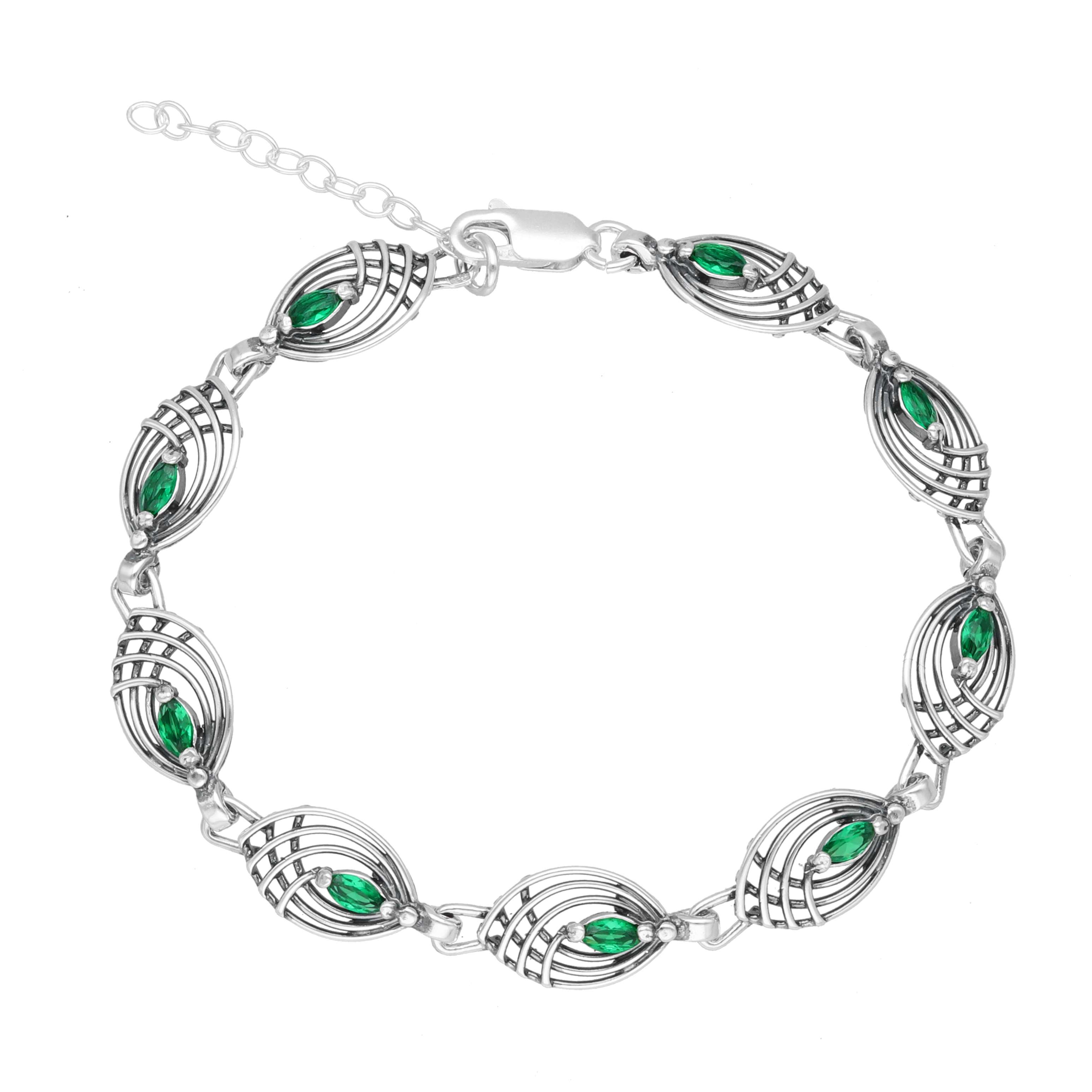 Bransoletka ażurowa ze szmaragdowymi cyrkoniami srebro oksydowane
