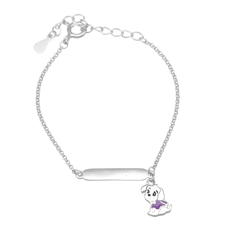 Bransoletka dla dzieci z blaszką i pieskiem srebro rodowane