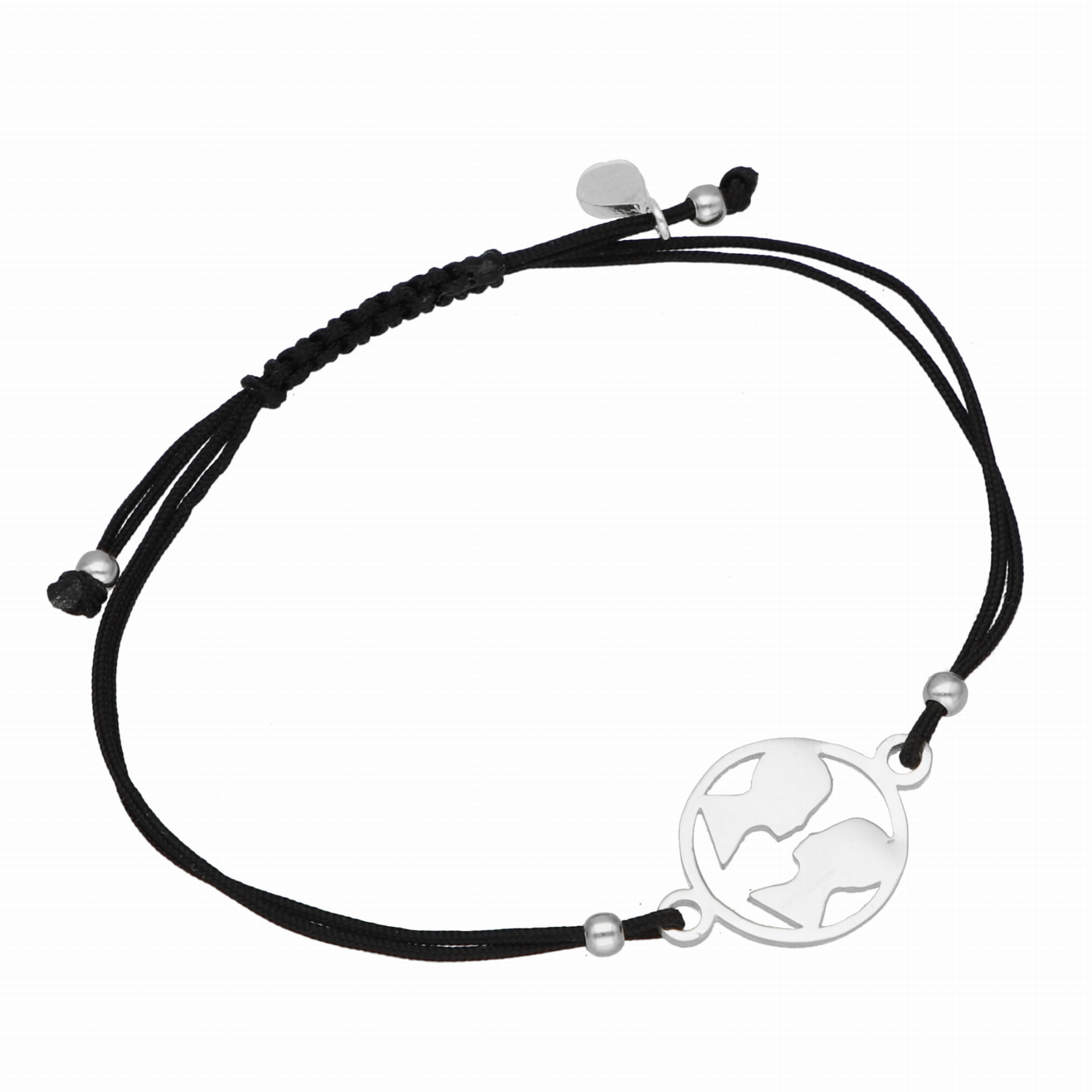 Bransoletka sznurkowa bliźnięta czarna srebro