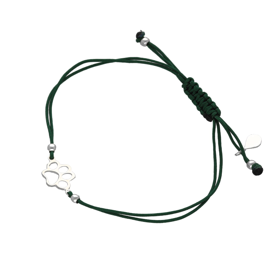 Bransoletka sznurkowa łapa psa zielona srebro