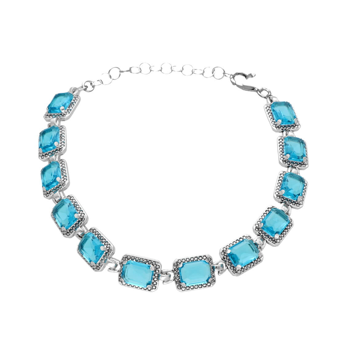 Bransoletka z prostokątnymi błękitnymi cyrkoniami srebro