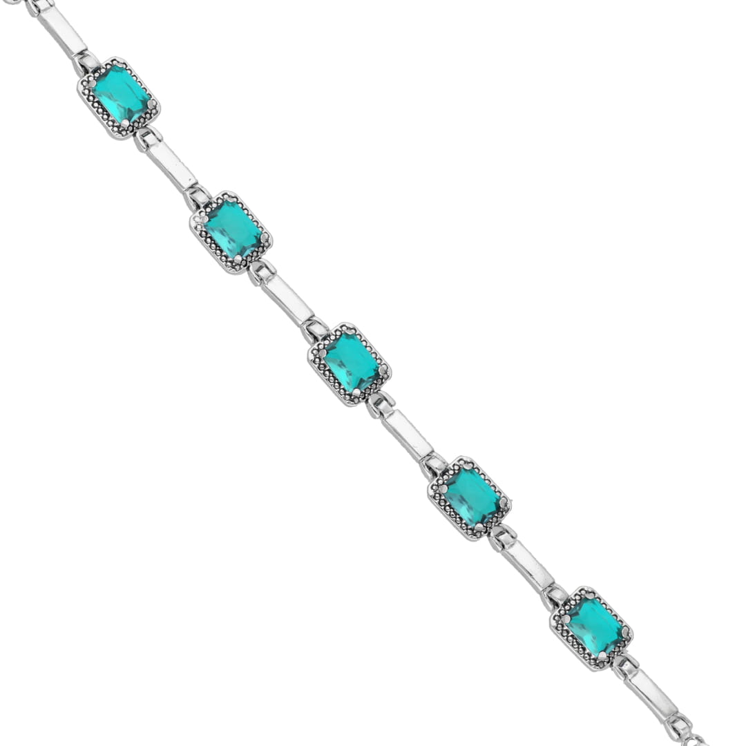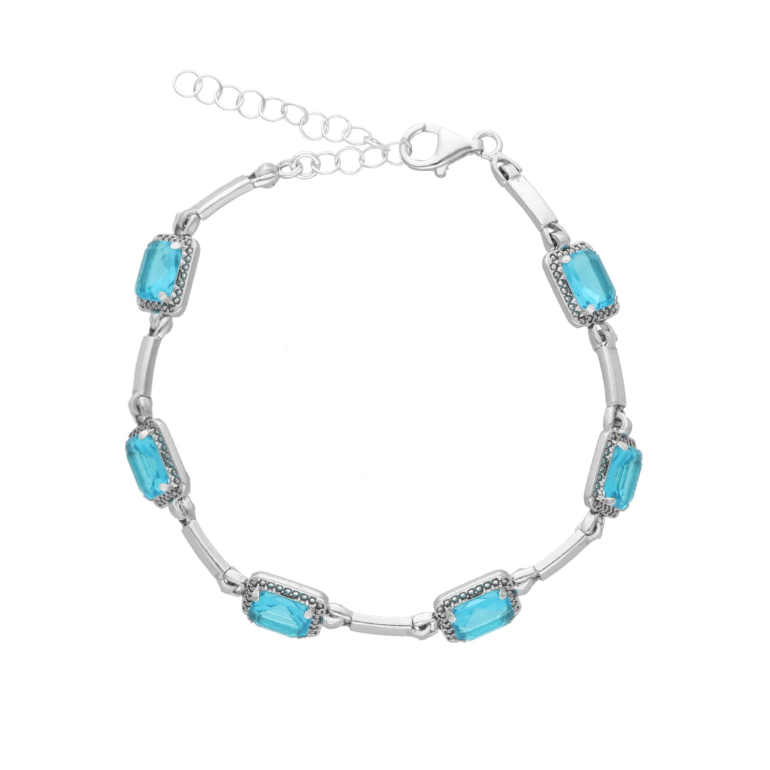 Bransoletka z prostokątnymi błękitnymi cyrkoniami srebro