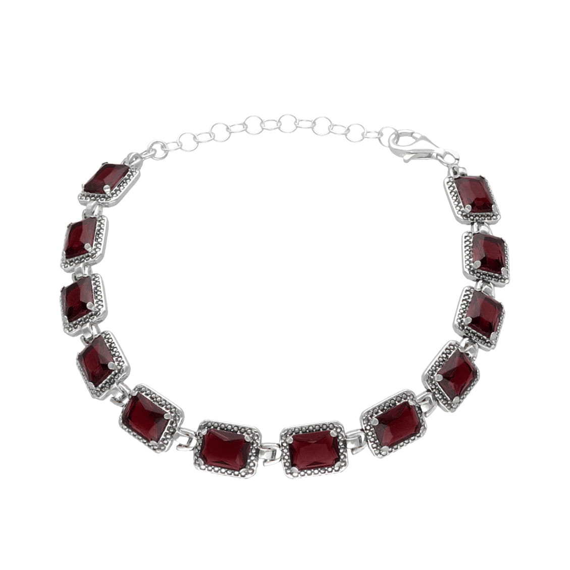 Bransoletka z prostokątnymi bordowymi cyrkoniami srebro