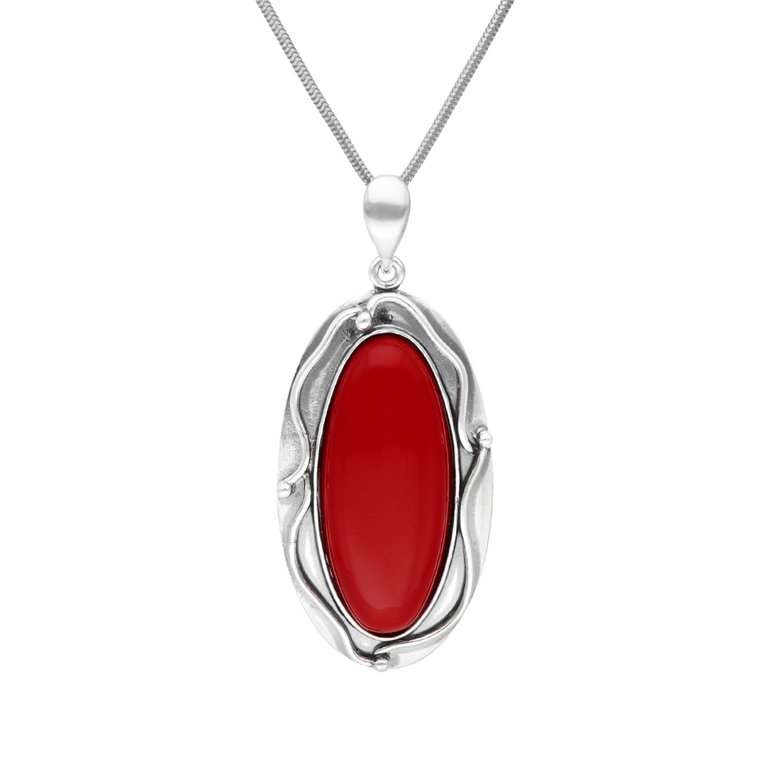 Efektowny wisior owalny z koralem srebro oksydowane