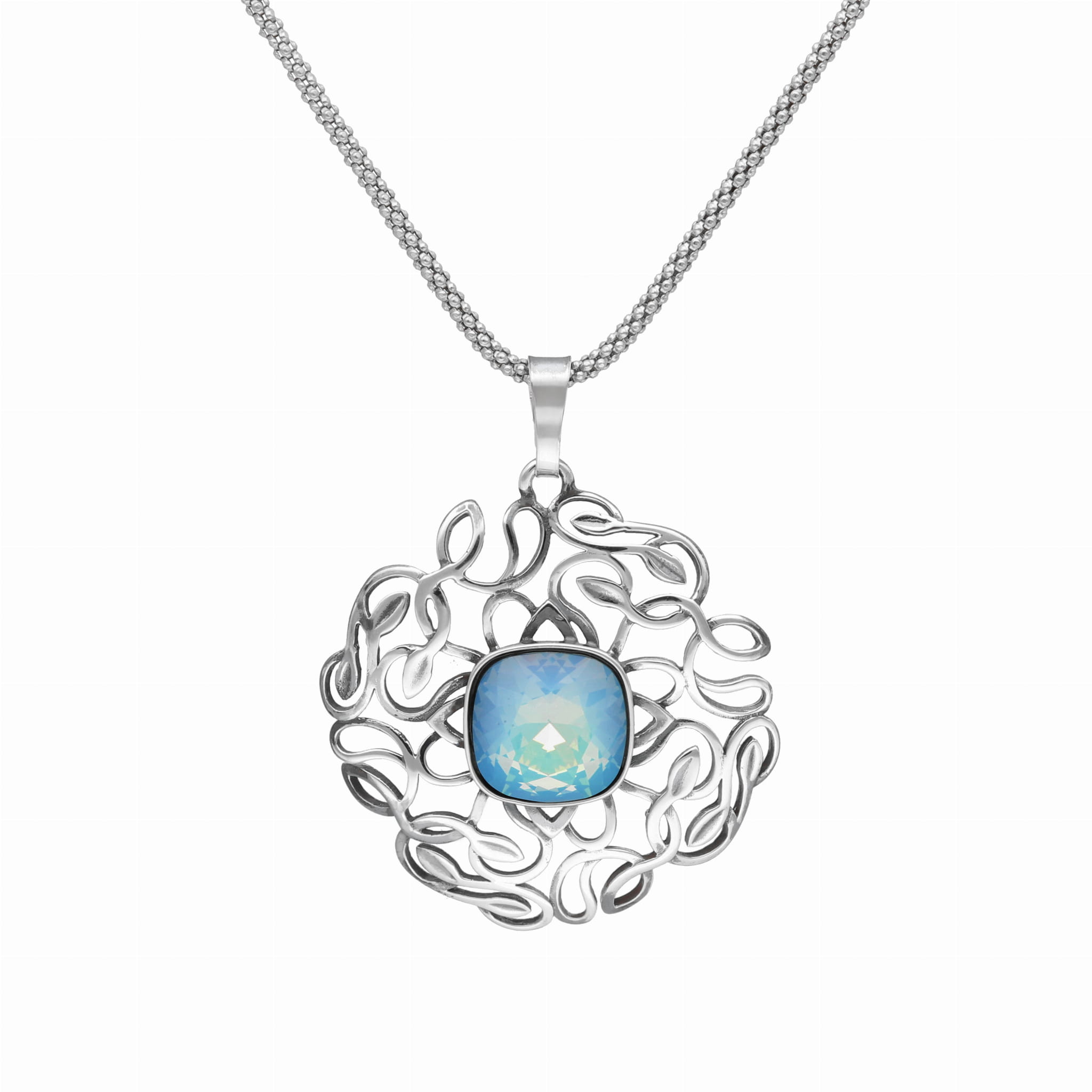 Efektowny wisior z kryształem Pacific Opal srebro oksydowane