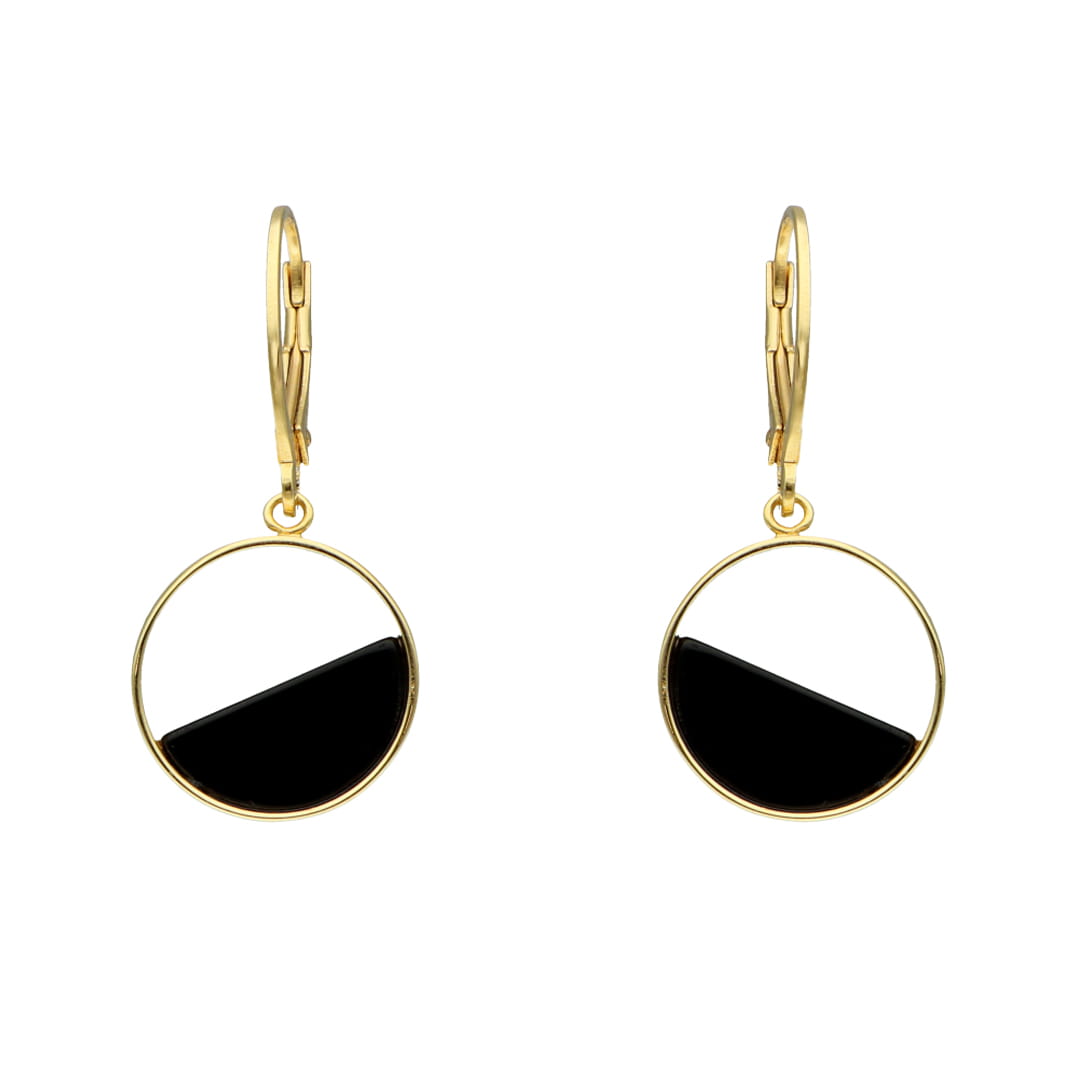 Kolczyki koła z onyksem srebro pozłacane