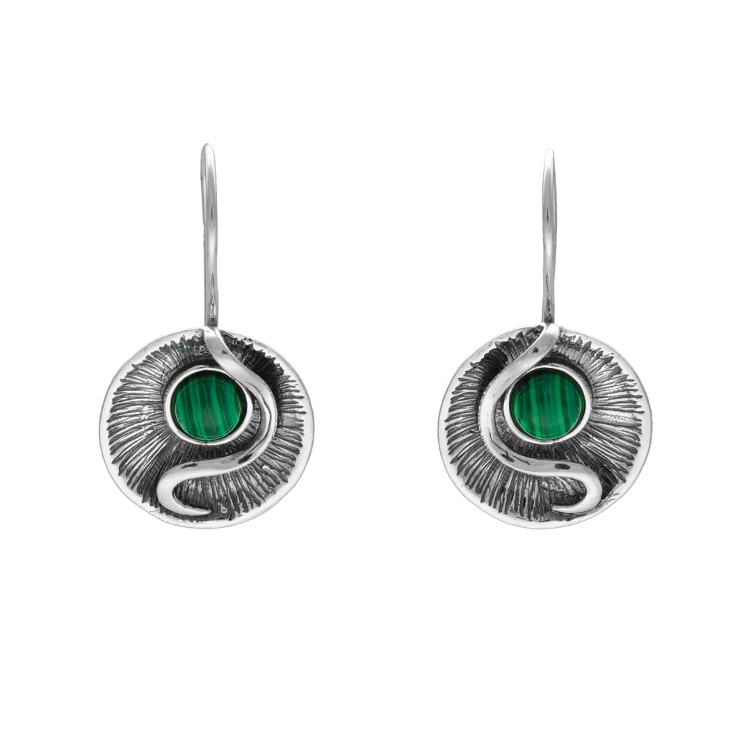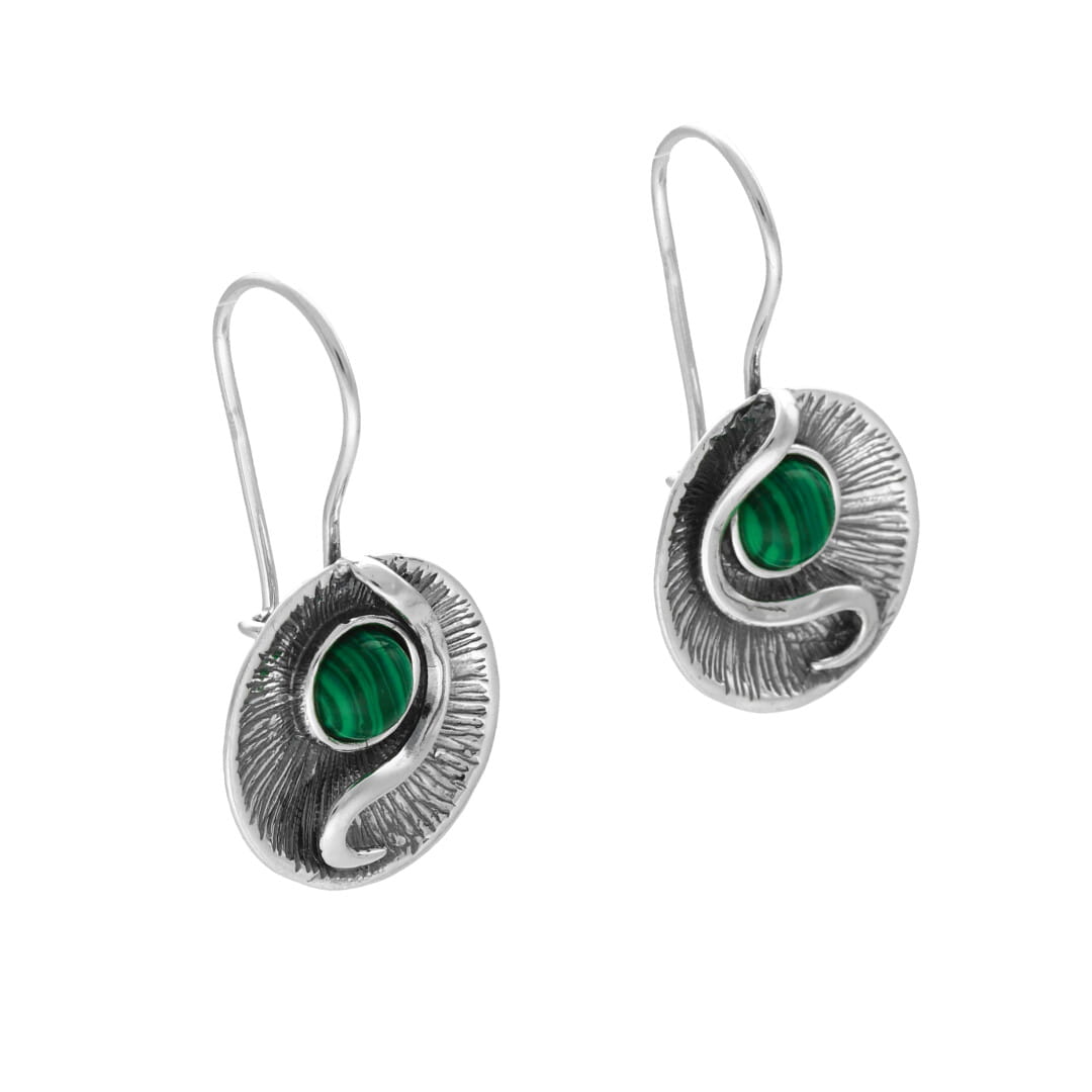 Kolczyki kółka z malachitem srebro oksydowane