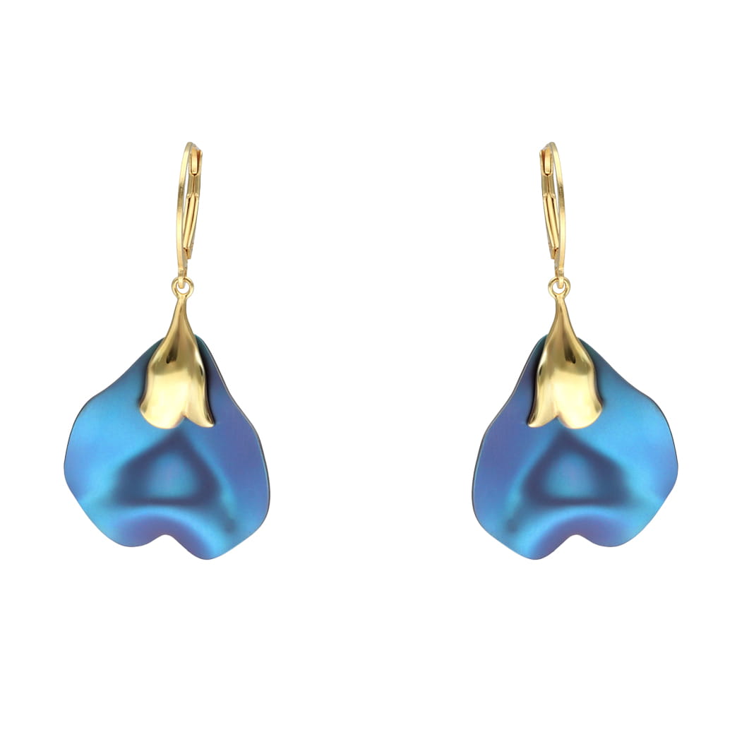 Kolczyki kwiaty turkusowy tytan srebro pozłacane