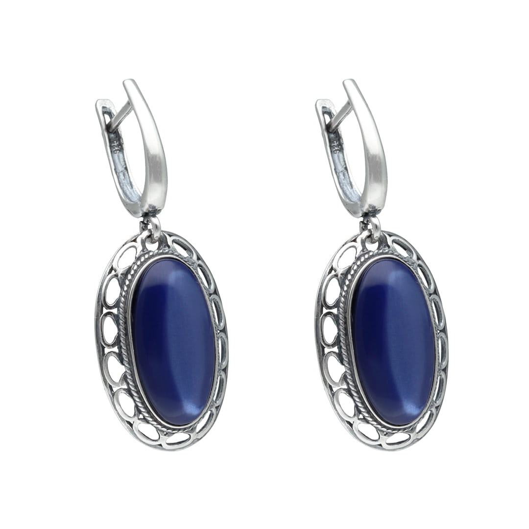 Kolczyki owalne z kobaltową masą perłową srebro oksydowane