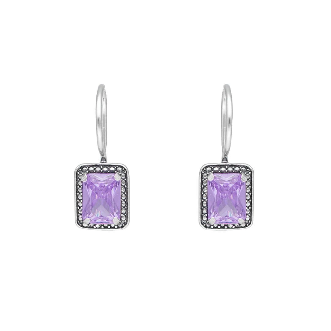 Kolczyki prostokątne z fioletowymi cyrkoniami srebro