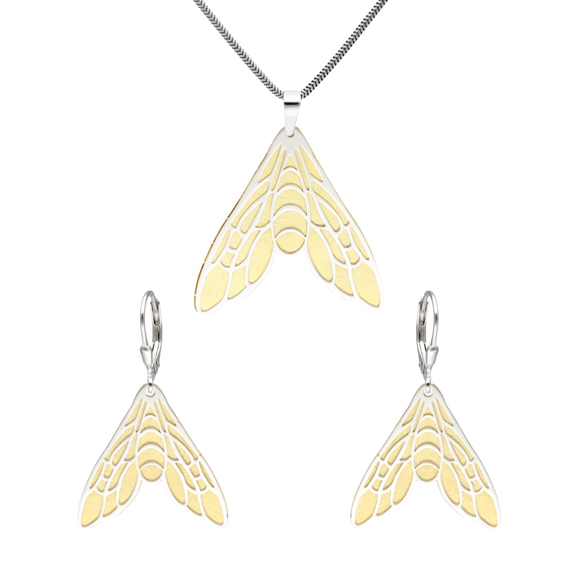 Komplet ćmy pozłacane srebro rodowane