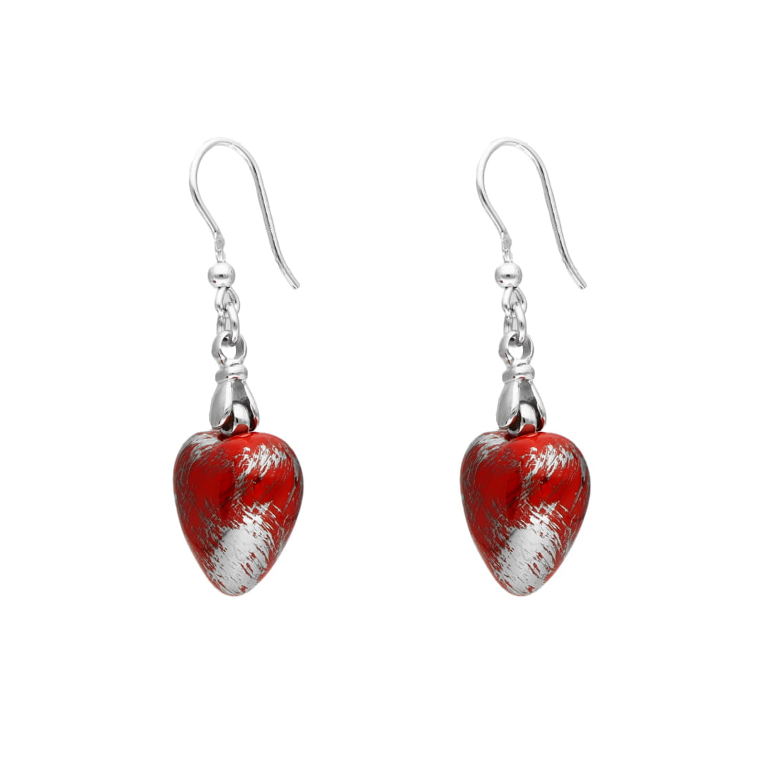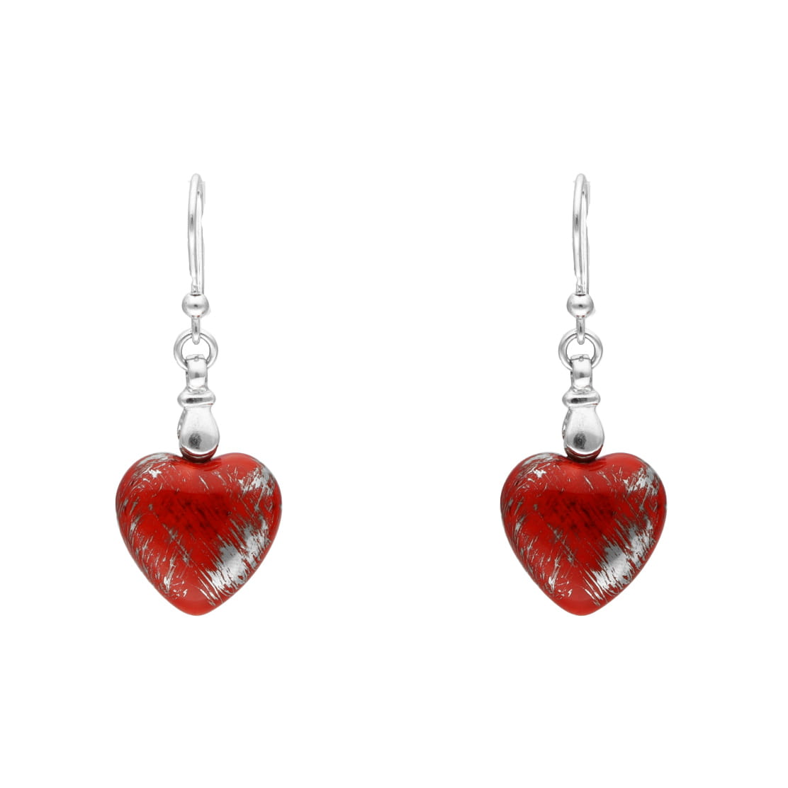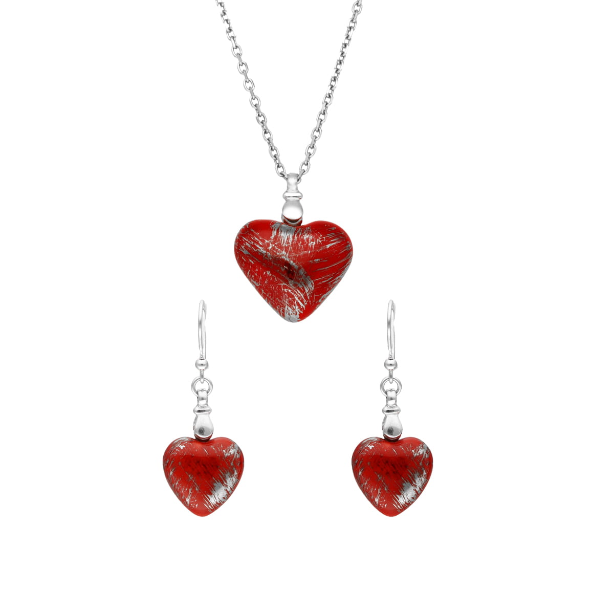 Komplet czerwone serca ręcznie malowane srebro