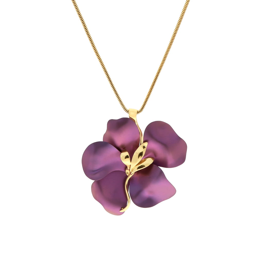 Komplet fioletowe kwiaty tytan srebro pozłacane