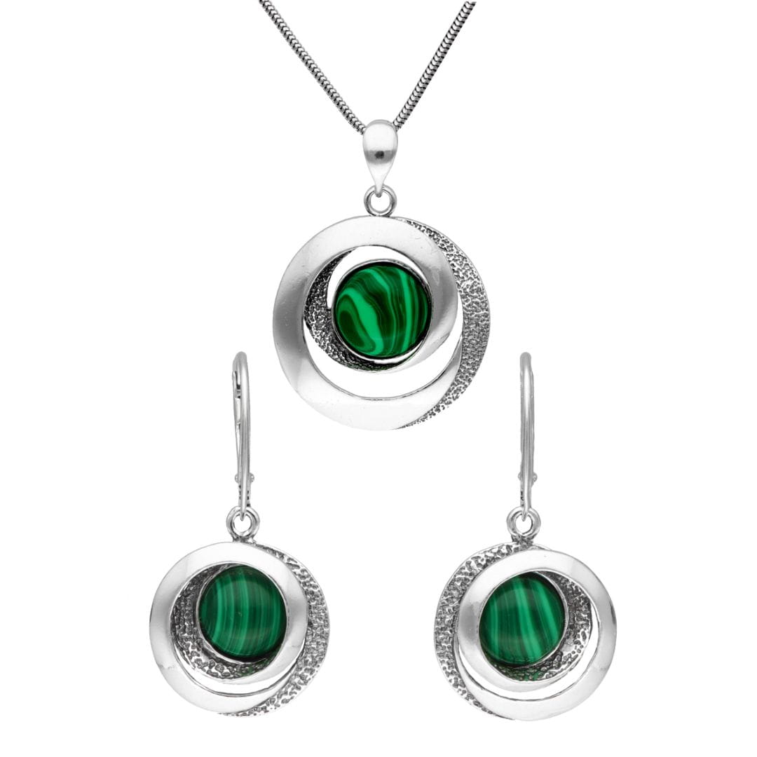Komplet geometryczny z malachitem srebro oksydowane