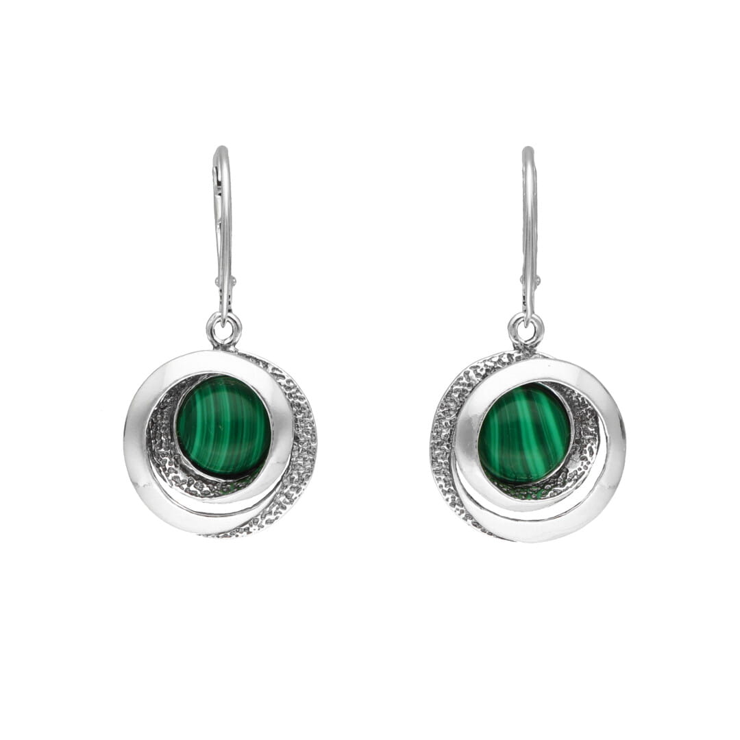 Kolczyki geometryczne z malachitem srebro oksydowane