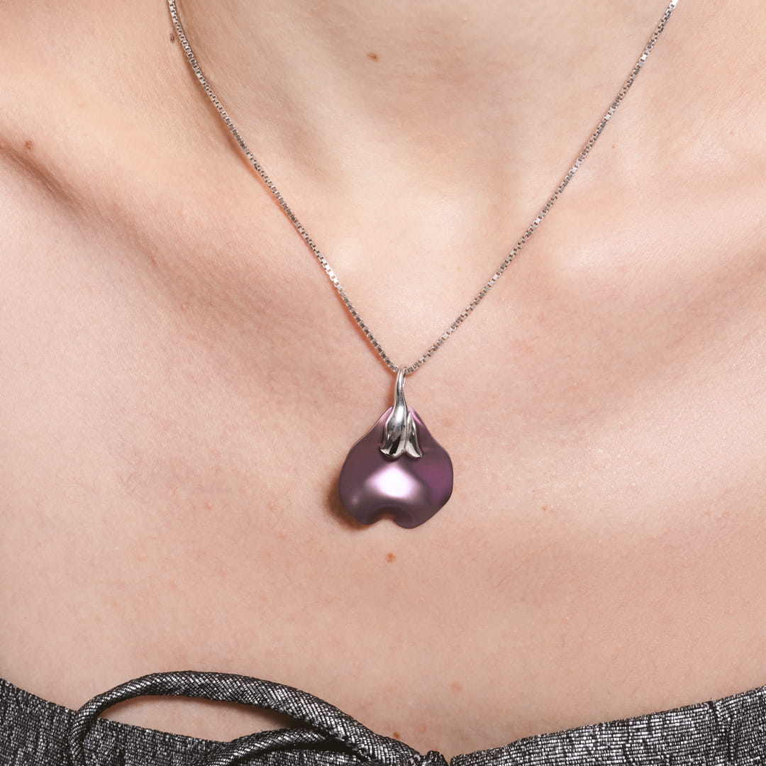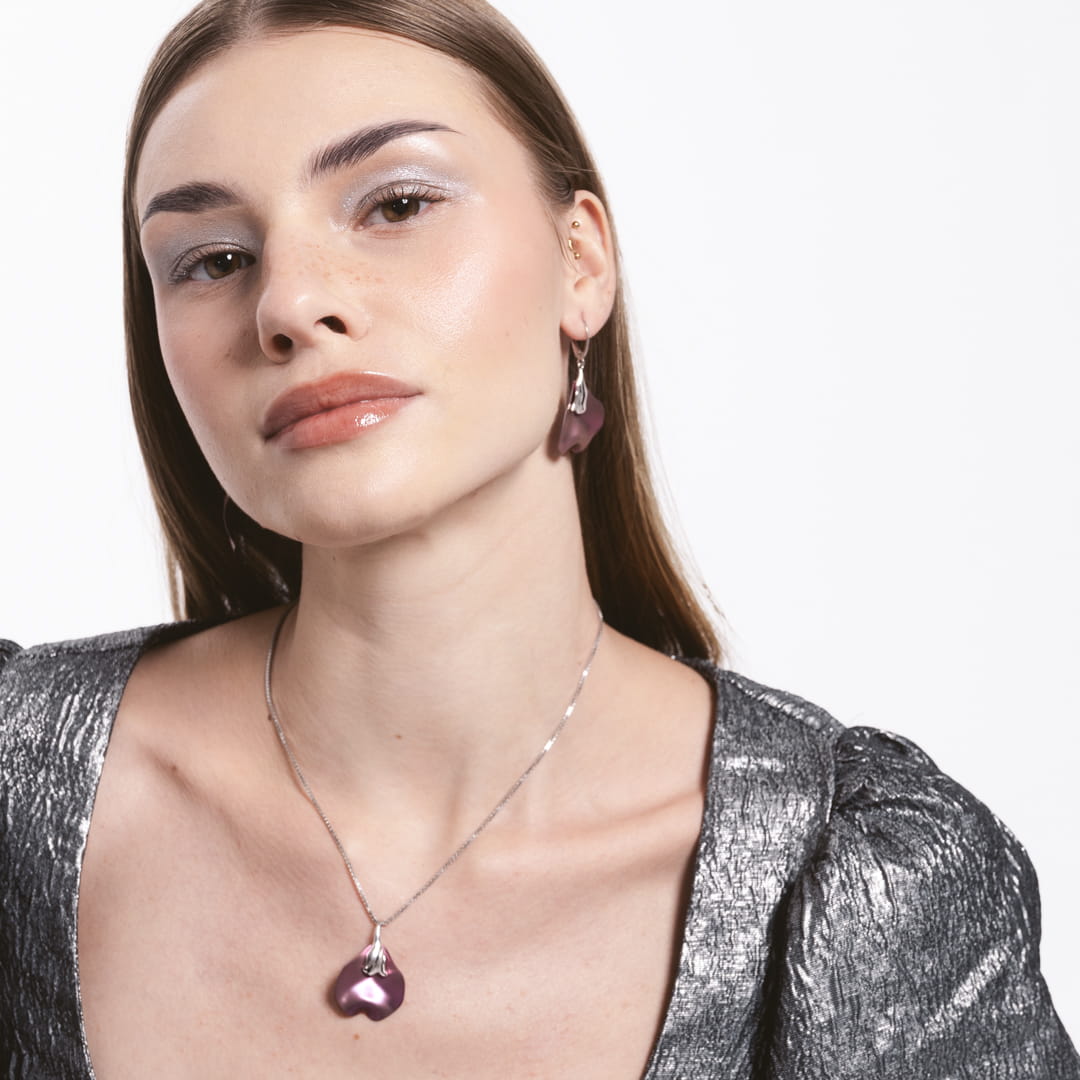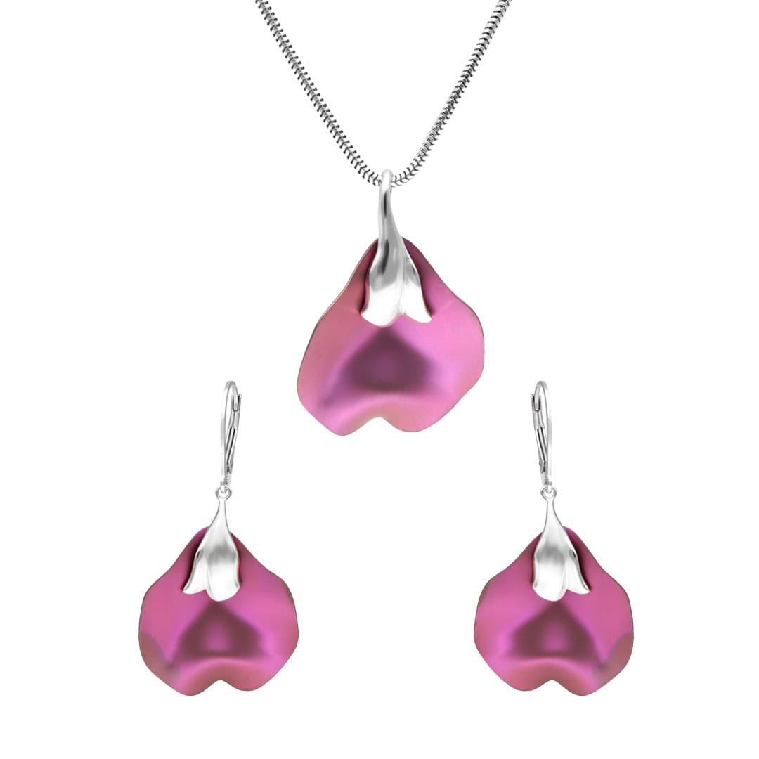 Komplet kwiat fioletowy tytan srebro