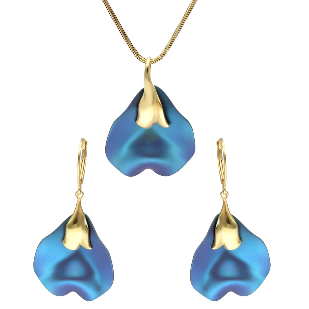Komplet kwiat turkusowy tytan srebro pozłacane