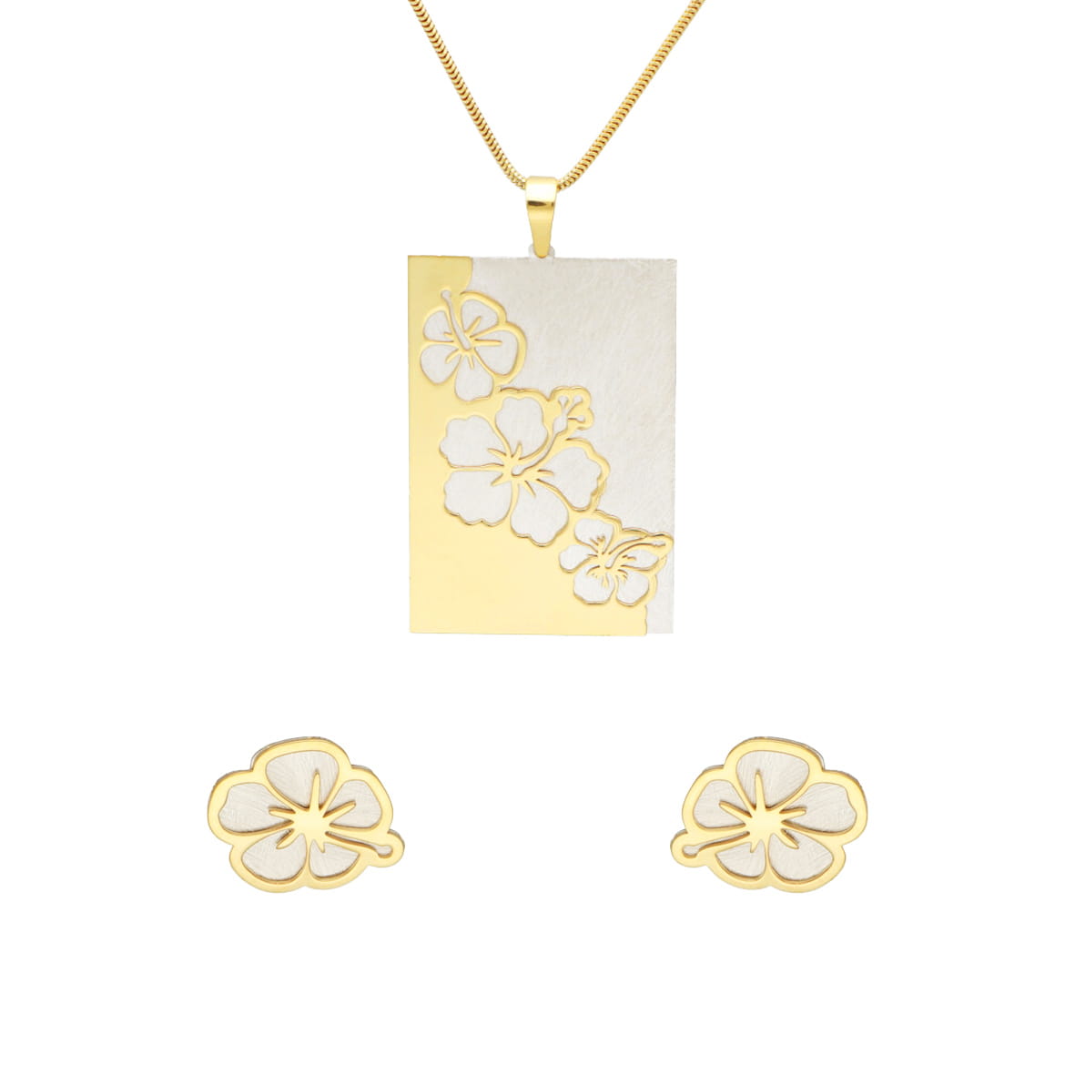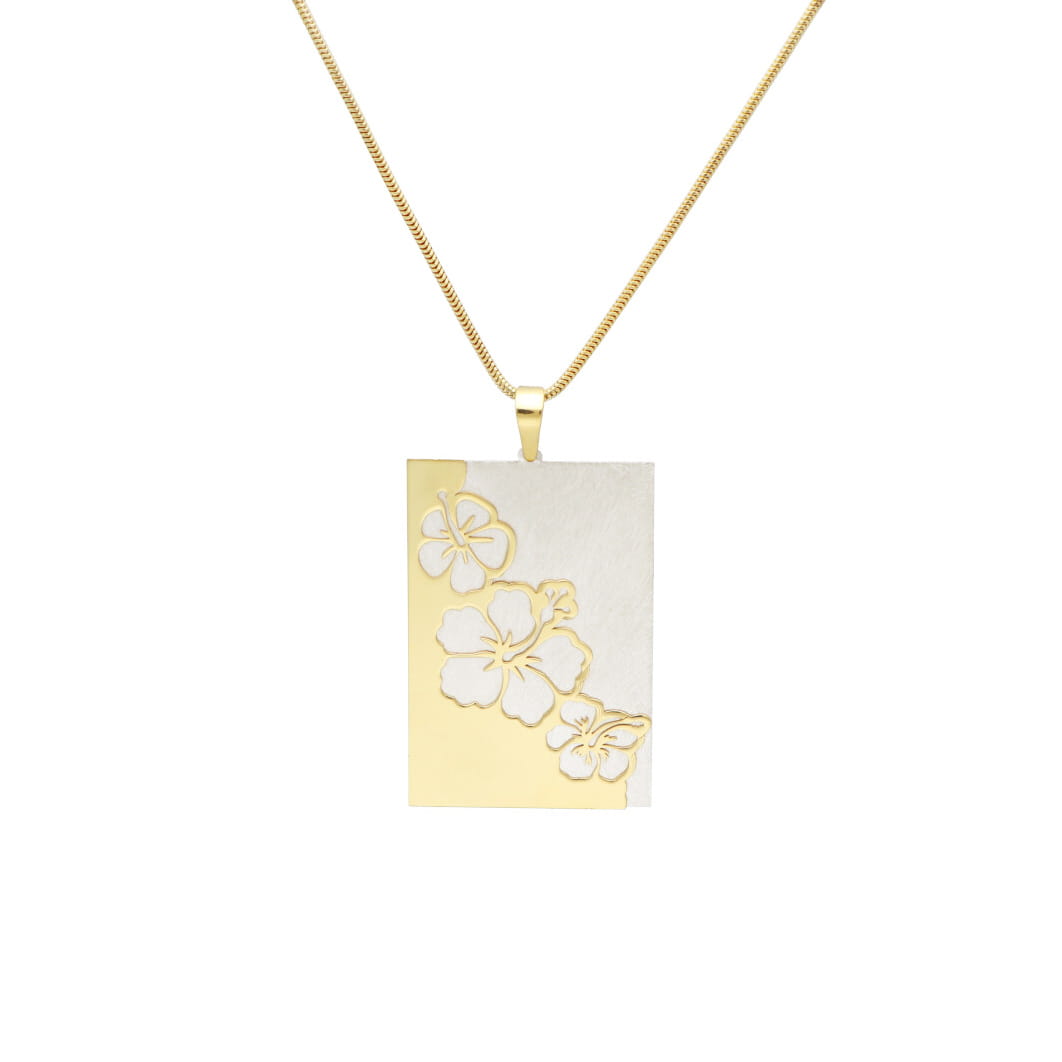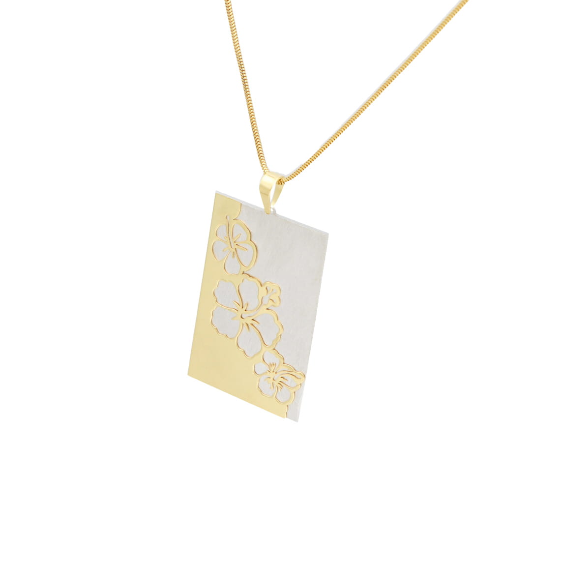 Wisior prostokąt z kwiatami srebro rodowane pozłacane