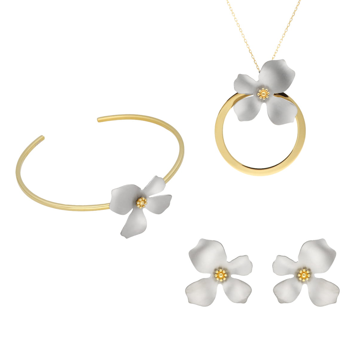 Komplet kwiaty tytan srebro pozłacane