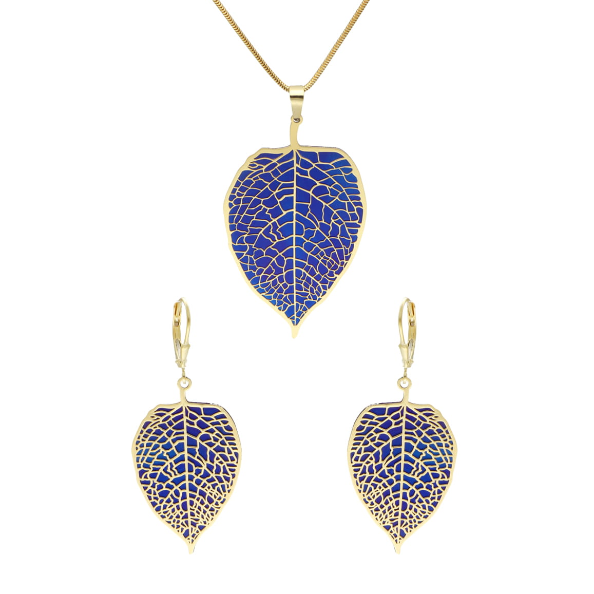 Komplet liście tytan srebro pozłacane