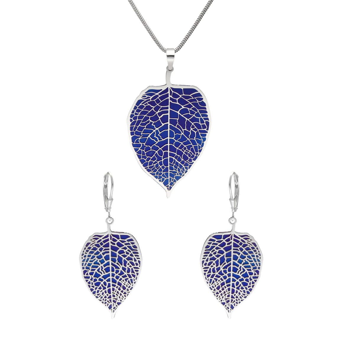 Komplet liście tytan srebro rodowane