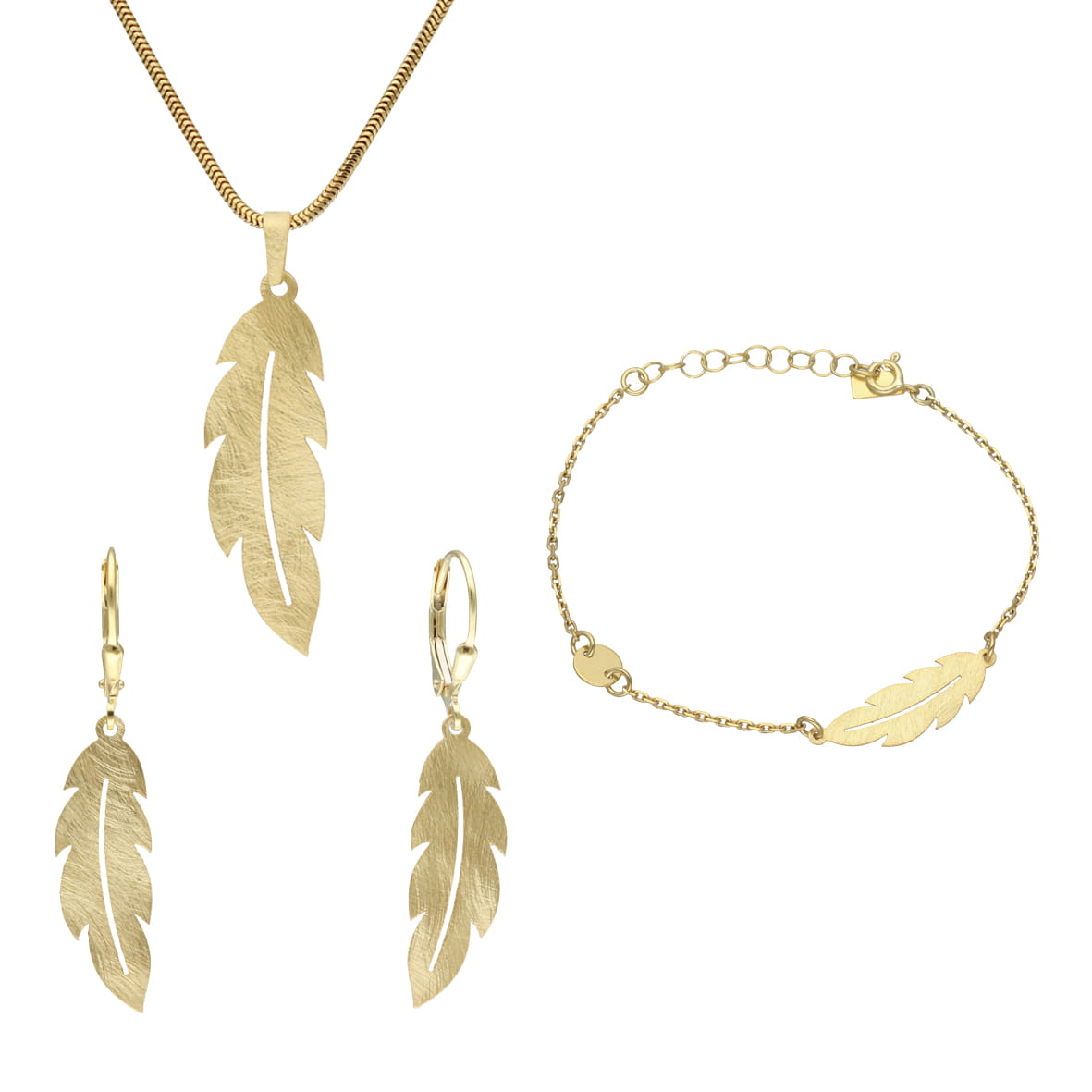 Komplet piórka srebro pozłacane