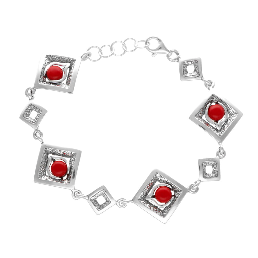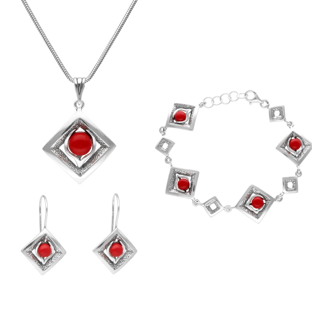 Komplet romby z koralem srebro oksydowane