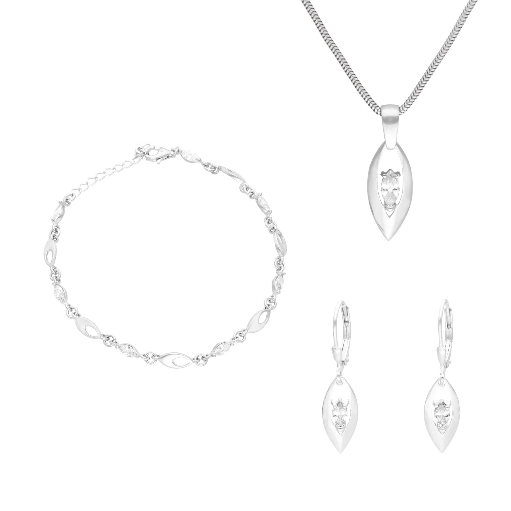 Komplet z białymi cyrkoniami łezki srebro