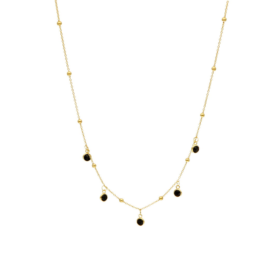 Naszyjnik z kuleczkami i czarnymi cyrkoniami srebro pozłacane
