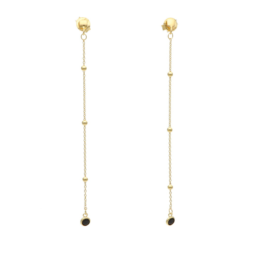 Kolczyki wiszące z czarną cyrkonią srebro pozłacane