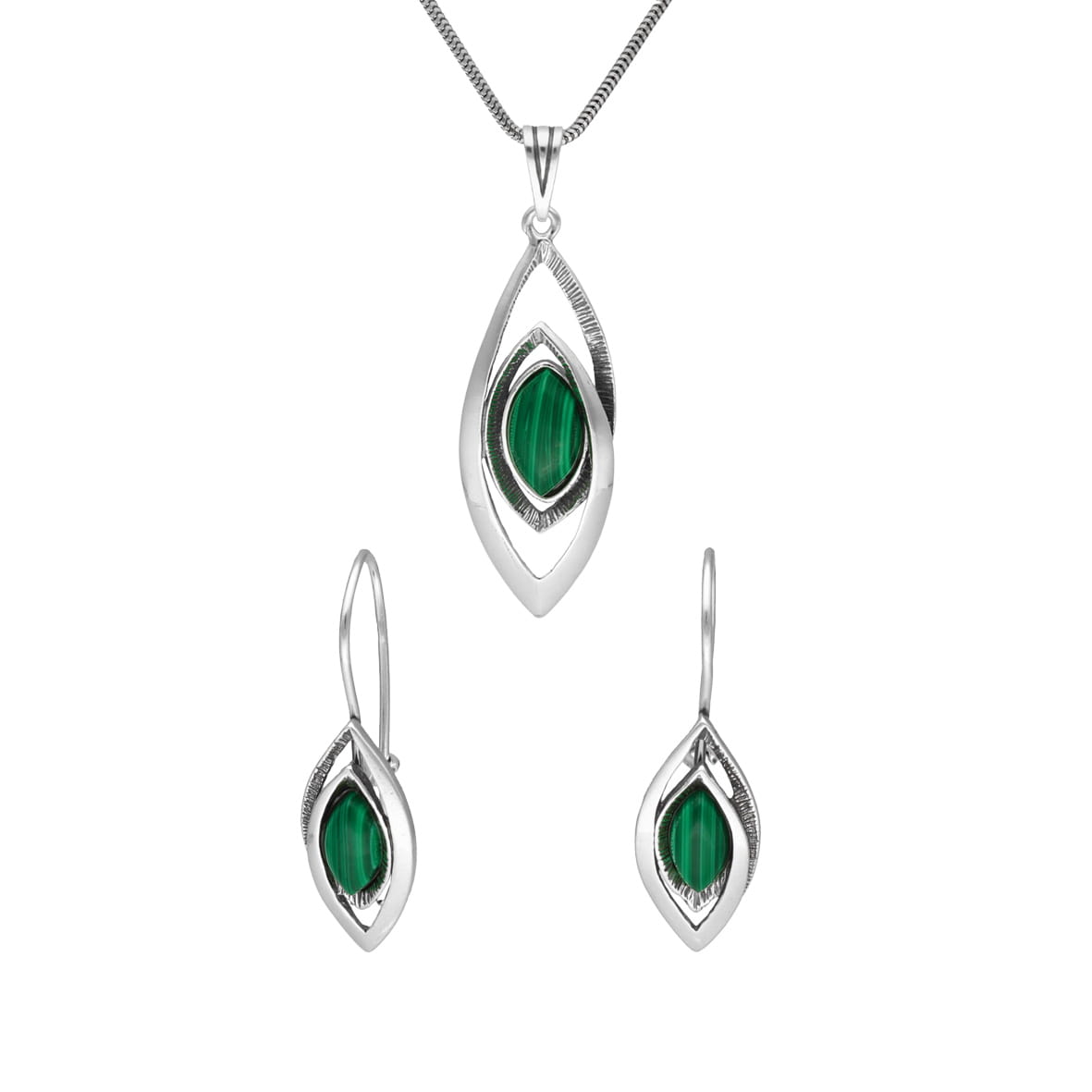 Komplet z malachitem srebro oksydowane