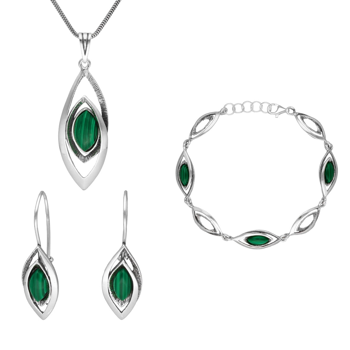 Komplet z malachitem srebro oksydowane