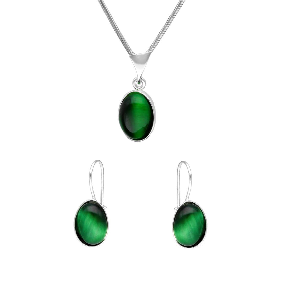 Komplet z owalnym zielonym kocim okiem