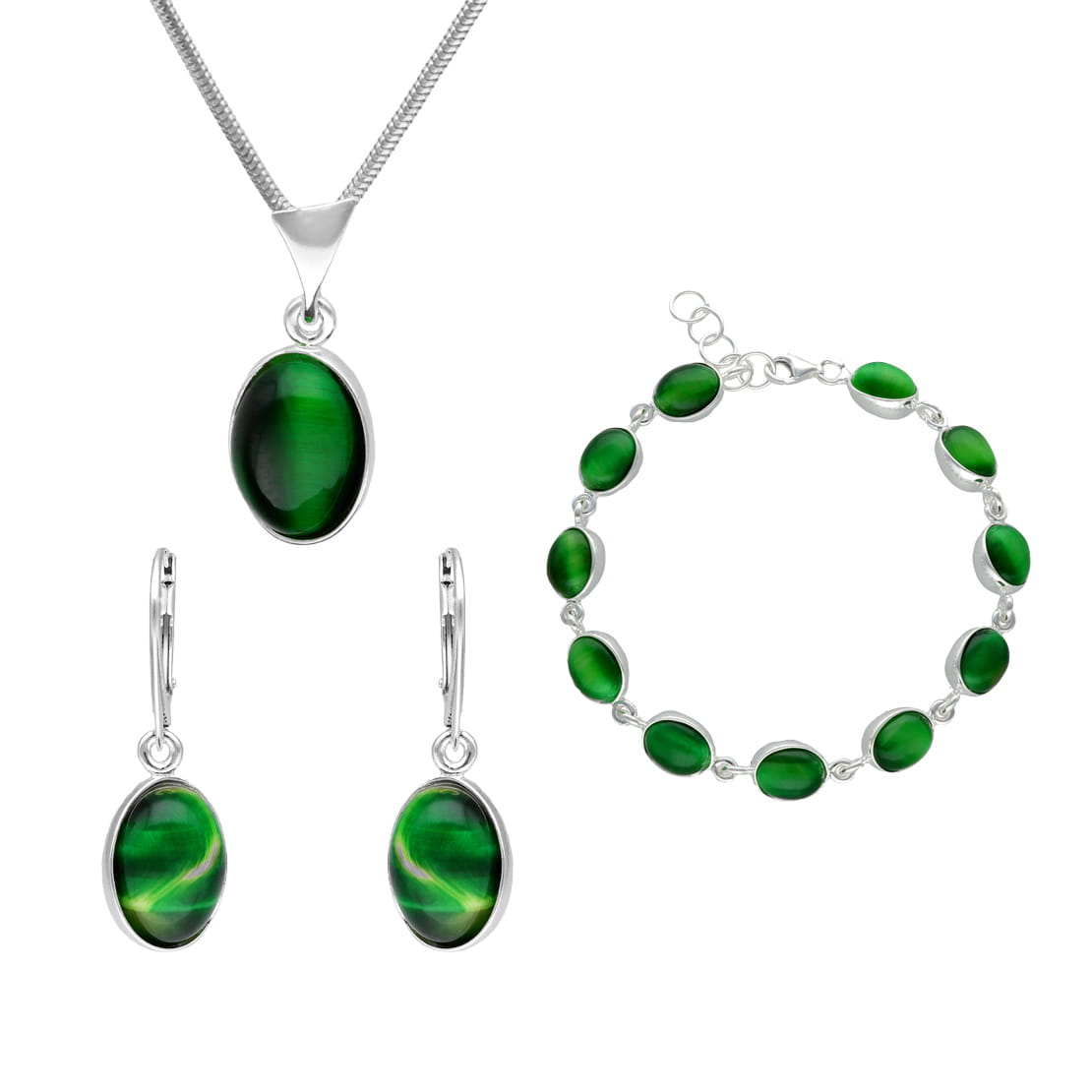Komplet z owalnym zielonym kocim okiem