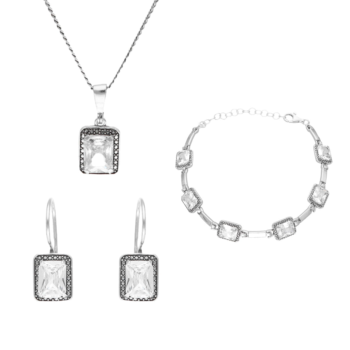 Komplet z prostokątnymi białymi cyrkoniami srebro