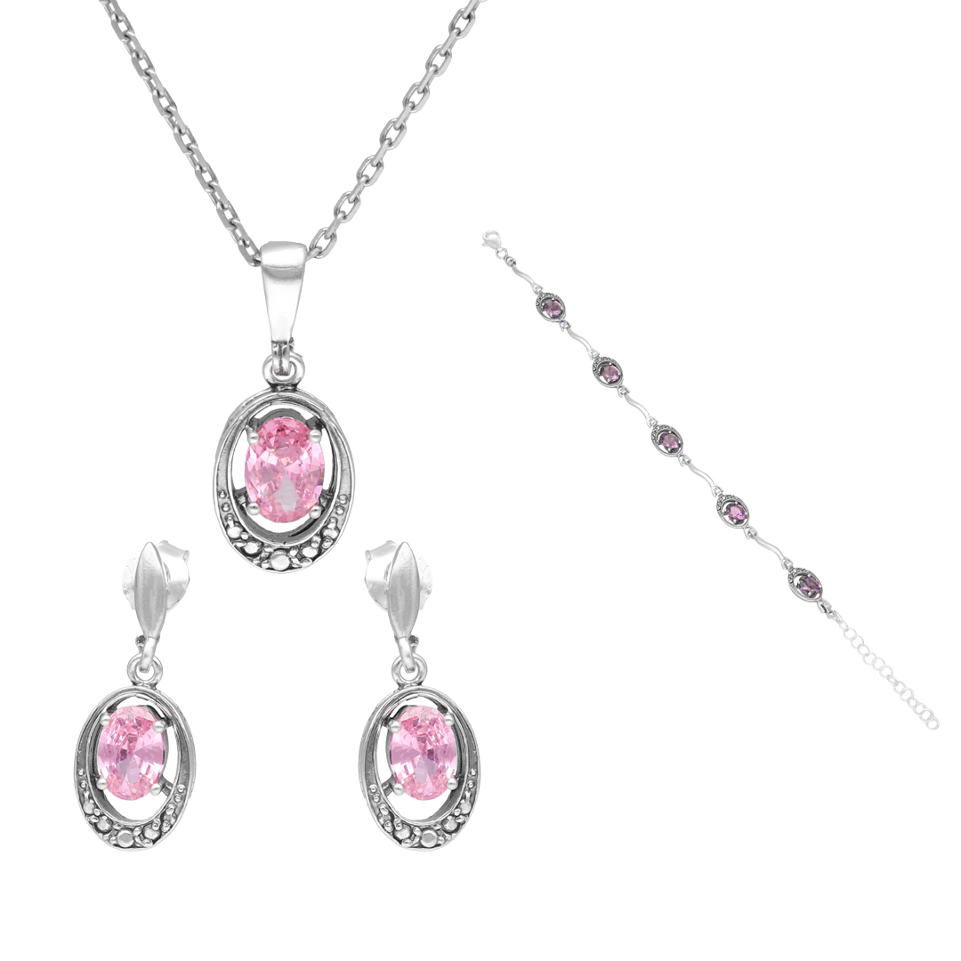 Komplet z różową cyrkonią srebro