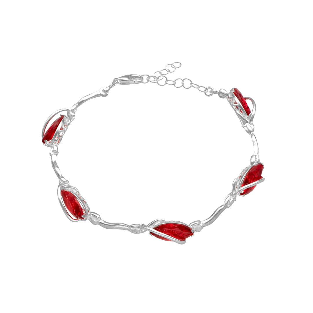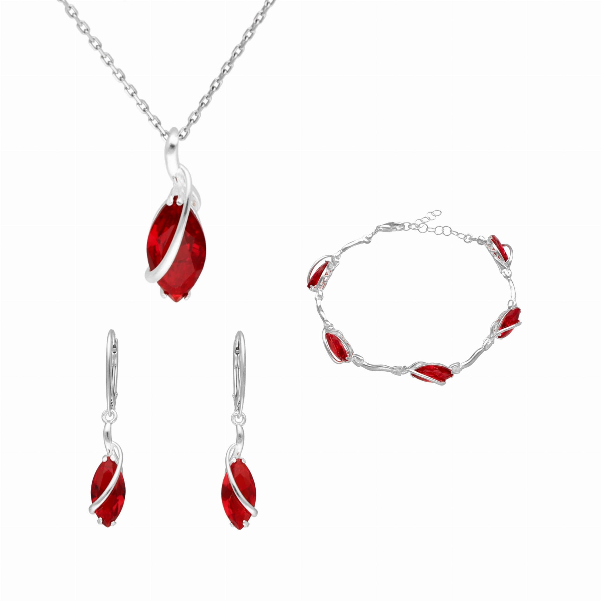 Komplet z rubinowymi cyrkoniami łezki srebro
