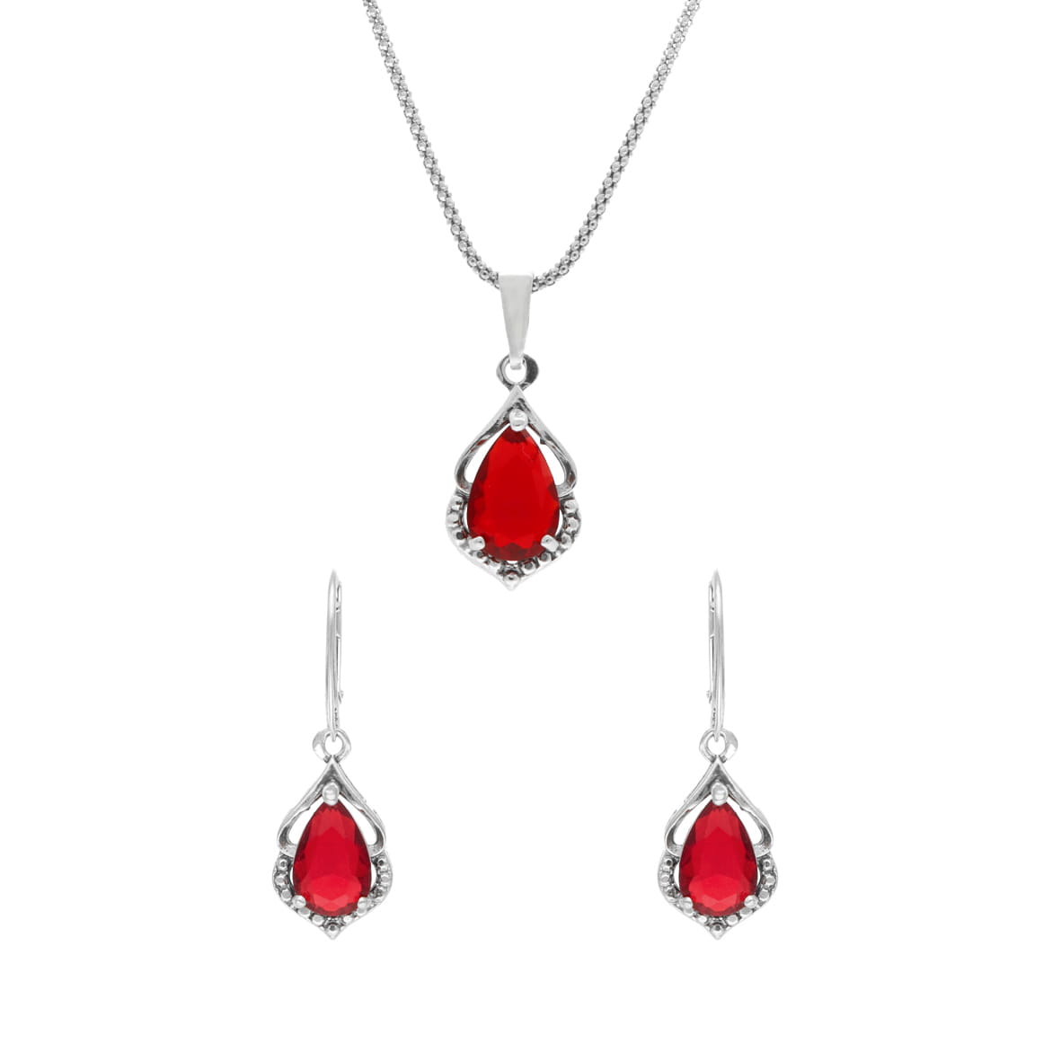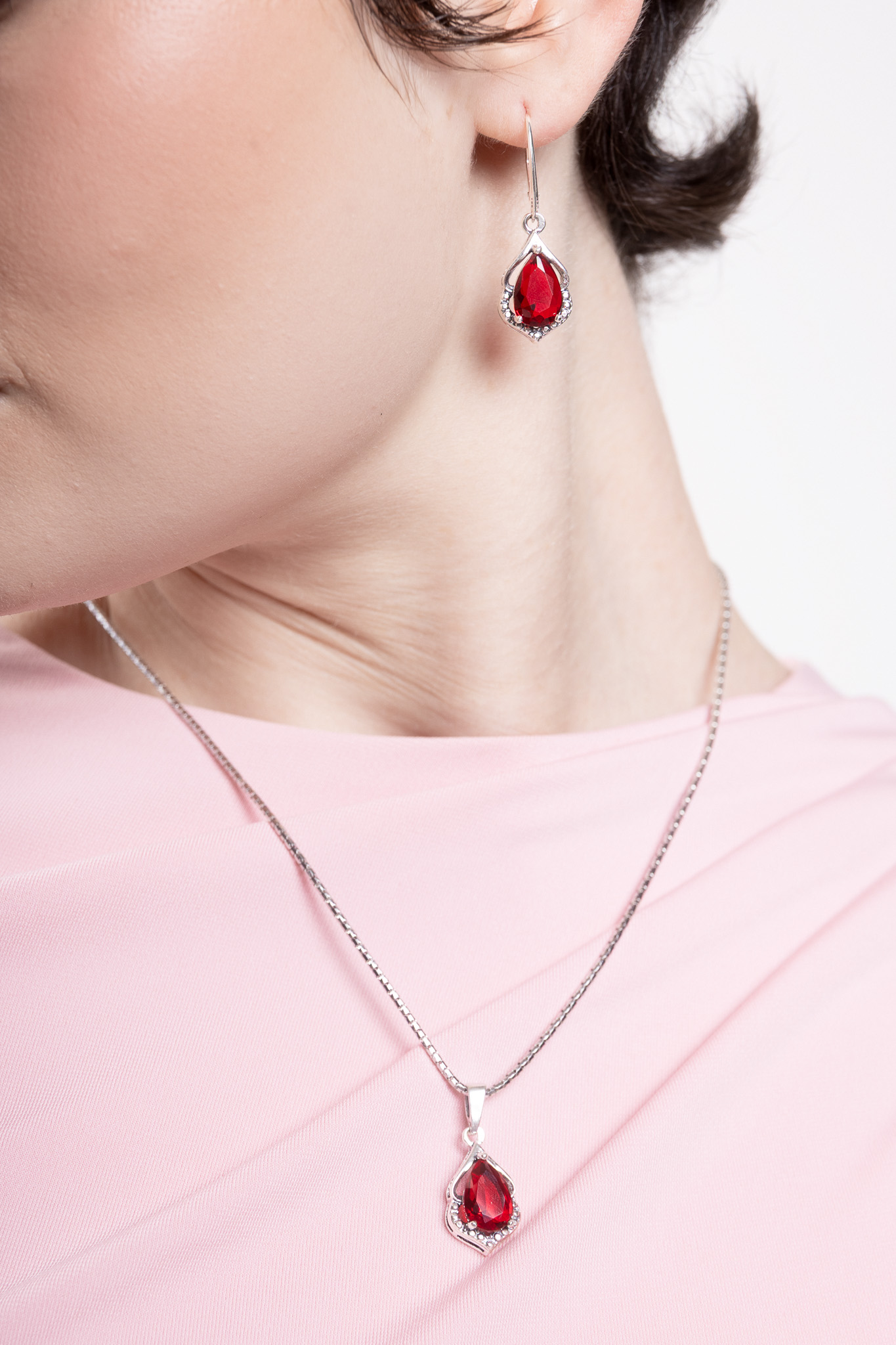 Komplet z rubinowymi cyrkoniami srebro