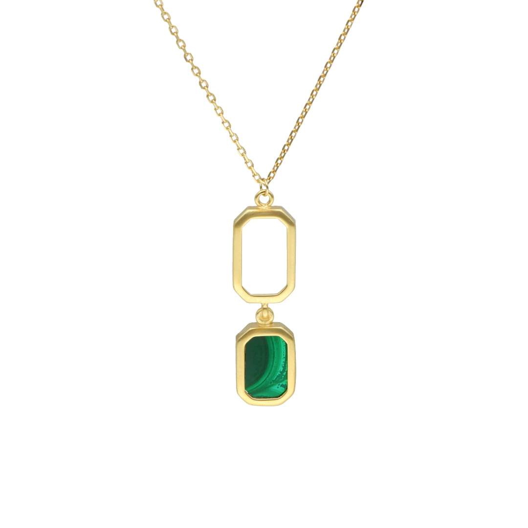 Naszyjnik krawatka z malachitem srebro pozłacane