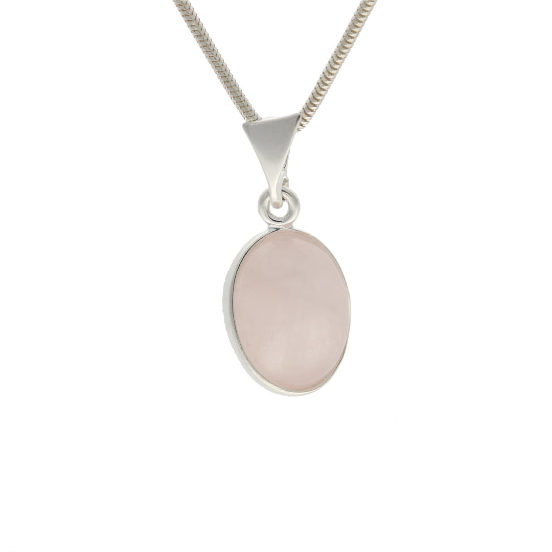 Owalny wisior z kwarcem różowym średni srebro