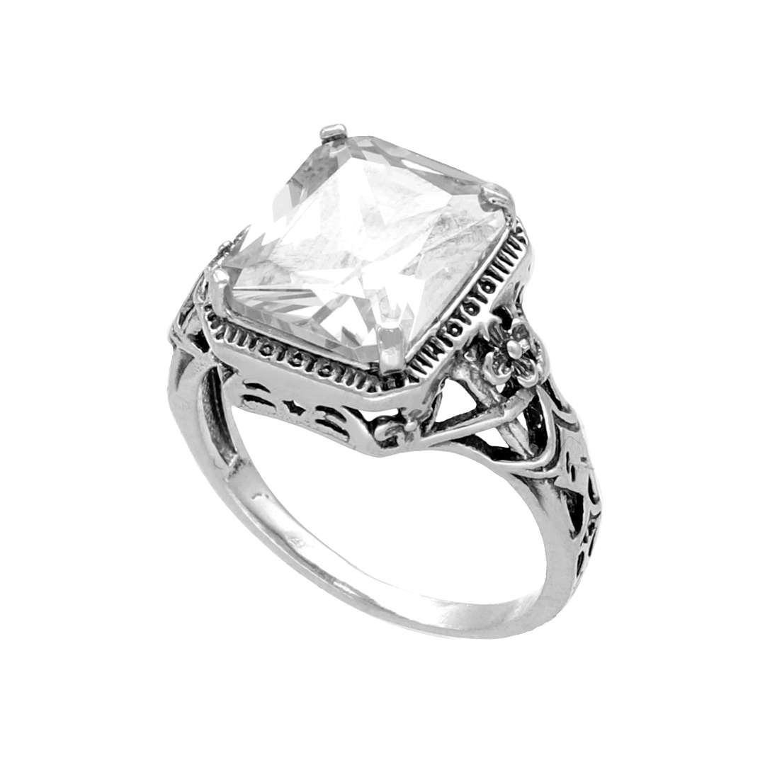Pierścionek prostokątny z białą cyrkonią srebro oksydowane