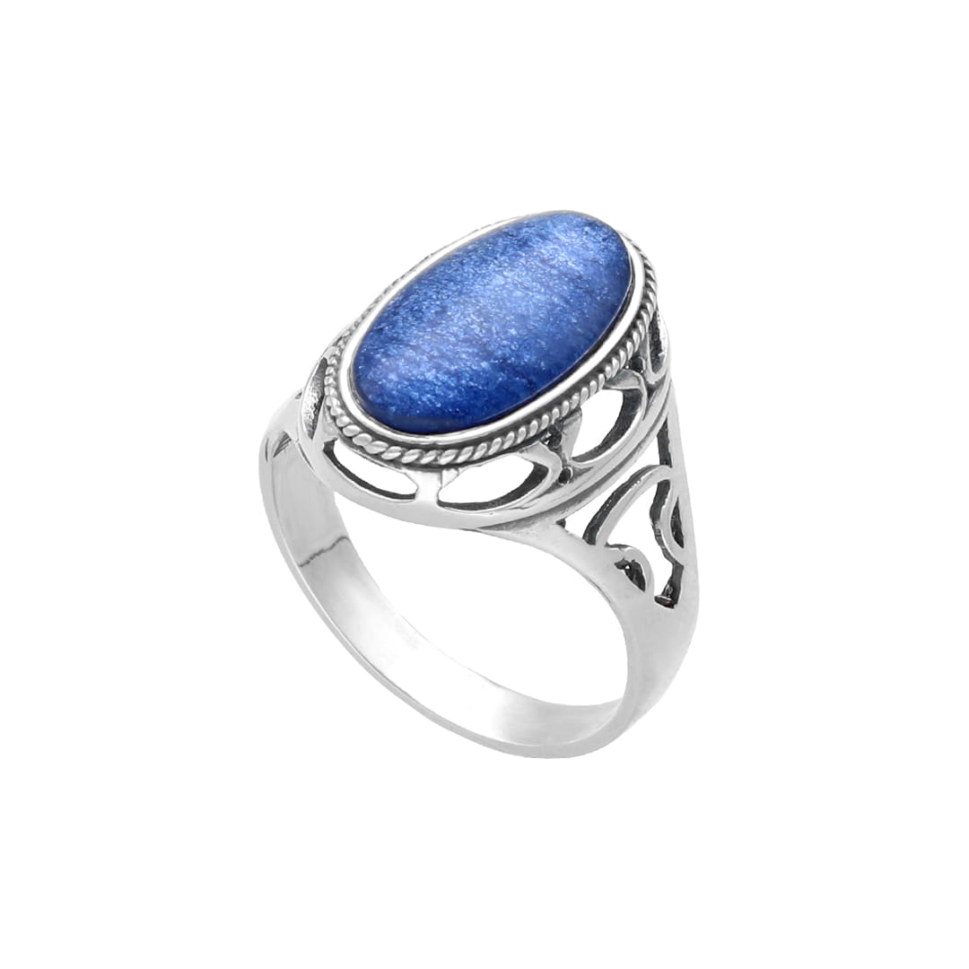Pierścionek z kobaltowym kamieniem księżycowym srebro oksydowane -