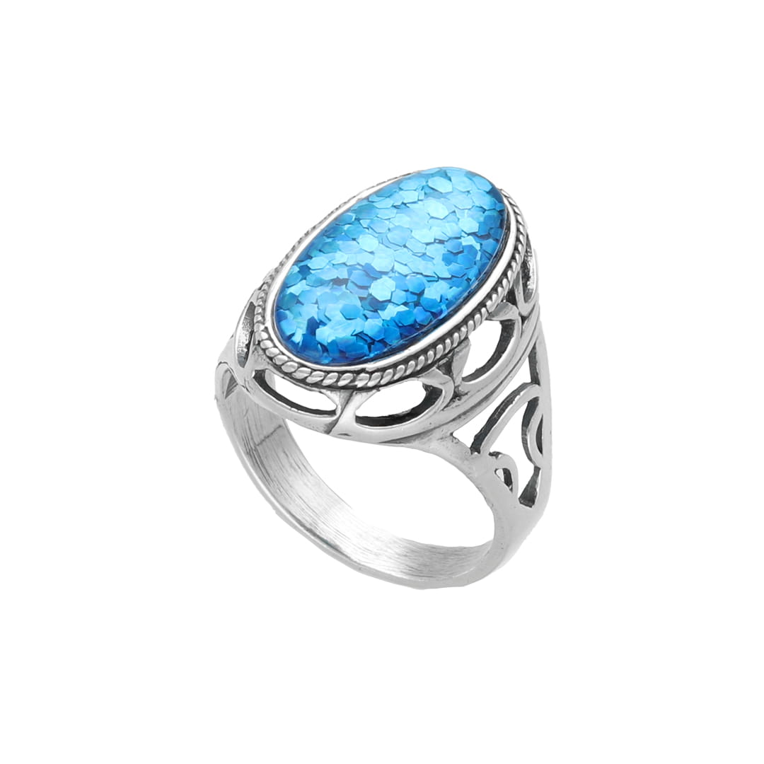 Pierścionek z opalem ognistym turkusowym srebro oksydowane