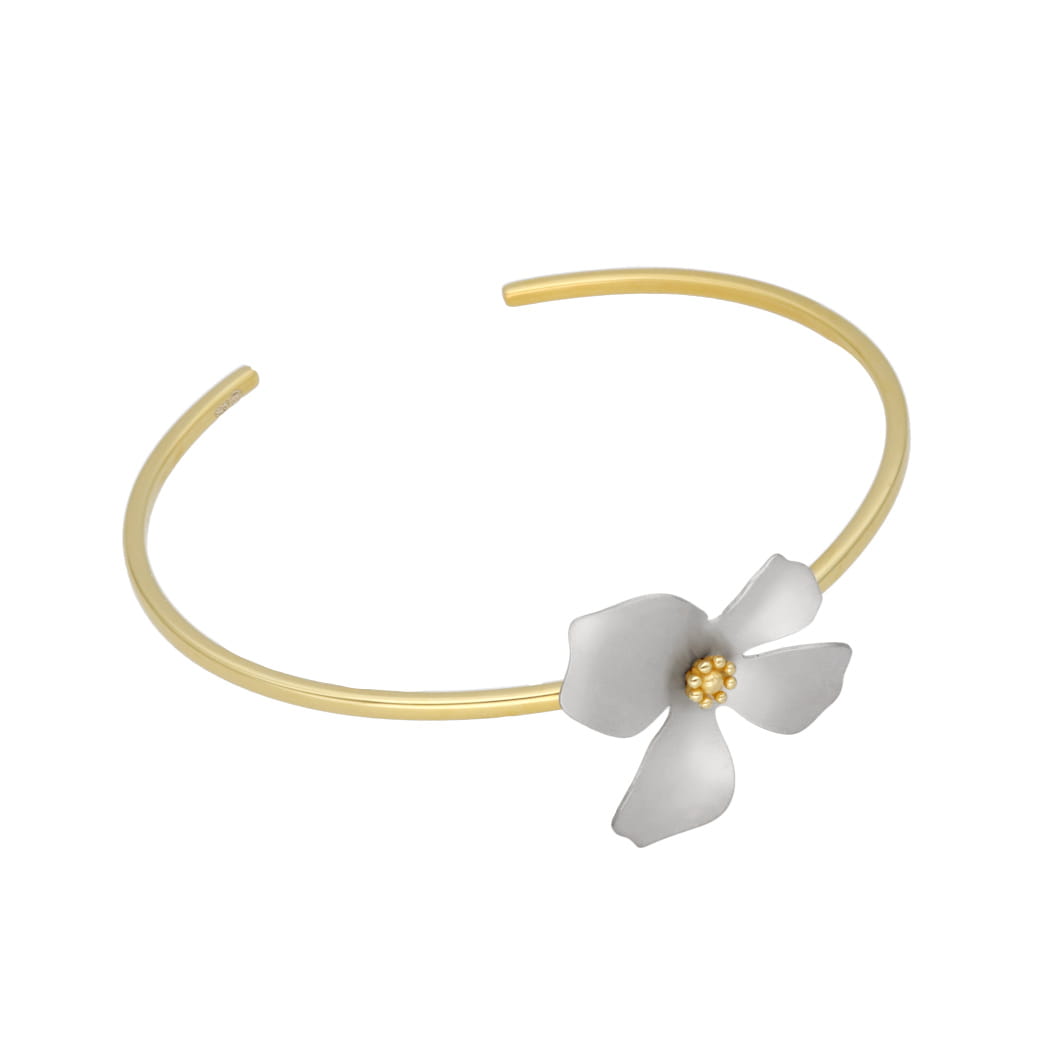 Sztywna bransoletka kwiat tytan srebro pozłacane