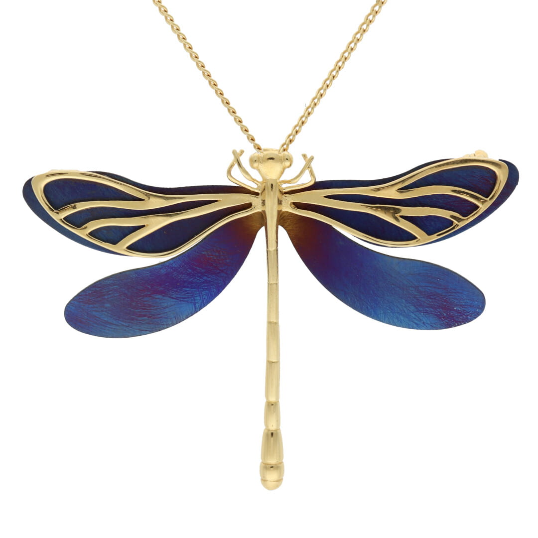 Wisior broszka ważka tytan srebro pozłacane