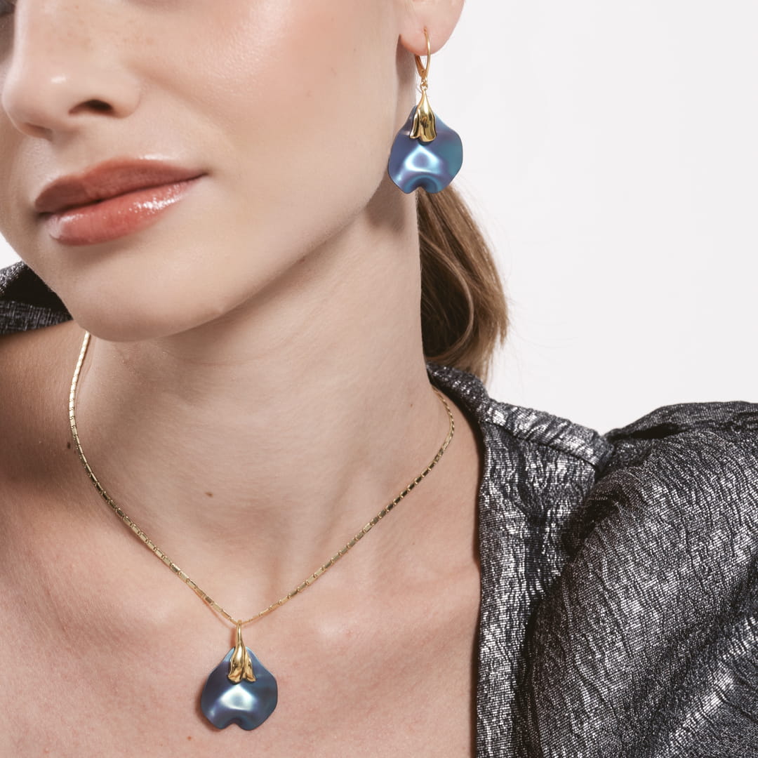 Wisior kwiat turkusowy tytan srebro pozłacane