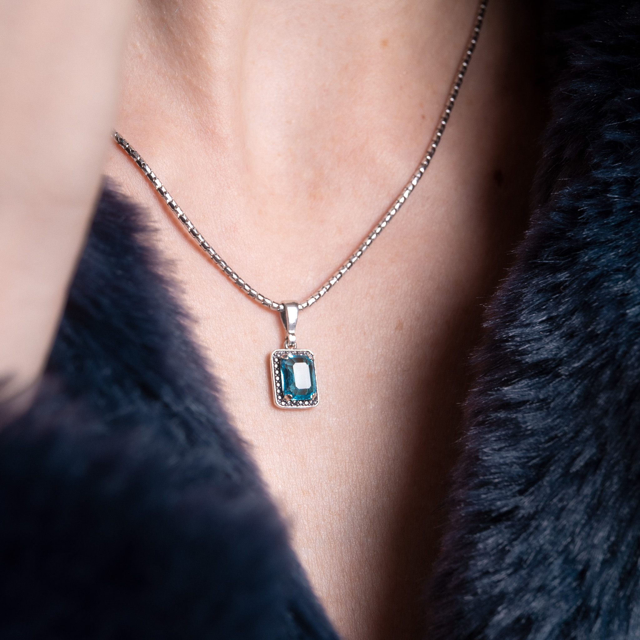Wisior prostokątny z błękitną cyrkonią srebro
