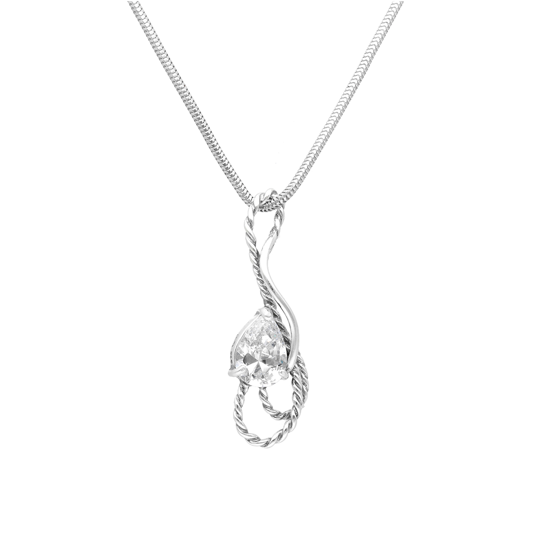 Wisior z plecionką i białą cyrkonią srebro